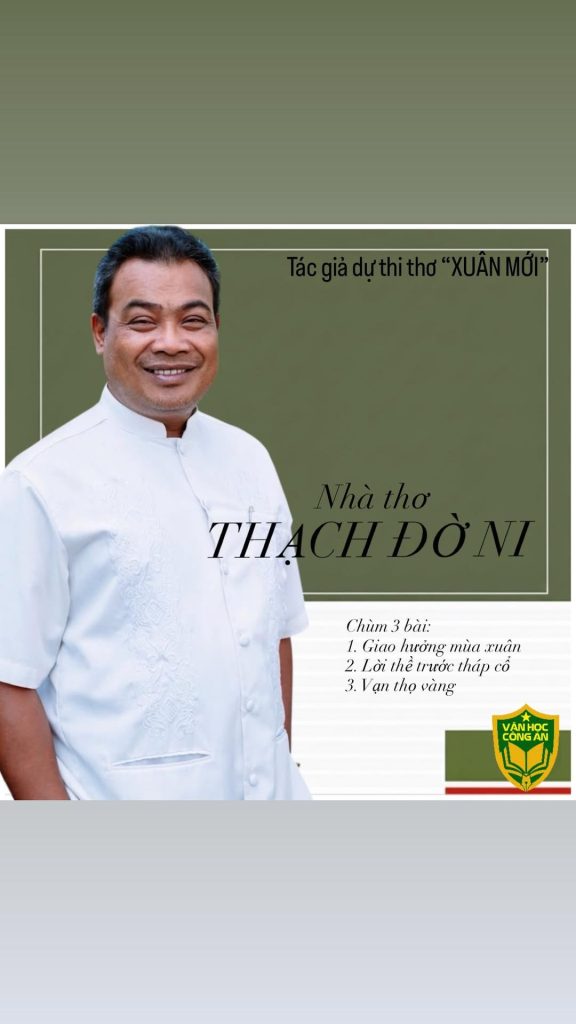 Chùm thơ mở ra một không gian mùa xuân phương Nam giàu sắc màu văn hóa, nơi phum sóc Khmer, mái chùa cong, điệu múa Rô-băm, Saravan, Apsara hòa cùng nhịp sống bình yên. Trong dòng chảy ấy, hình ảnh người chiến sĩ công an hiện lên dung dị mà bền bỉ, lặng lẽ đứng gác cho mùa màng, cho chữ nghĩa nảy mầm, cho niềm tin được gieo xuống đời sống thường ngày. Thơ không ồn ào khẩu hiệu, mà thấm dần qua bát canh chua, đòn bánh tét, nụ cười mẹ già, để mùa xuân hiện hữu như một trạng thái hòa hợp và đoàn kết lâu bền.