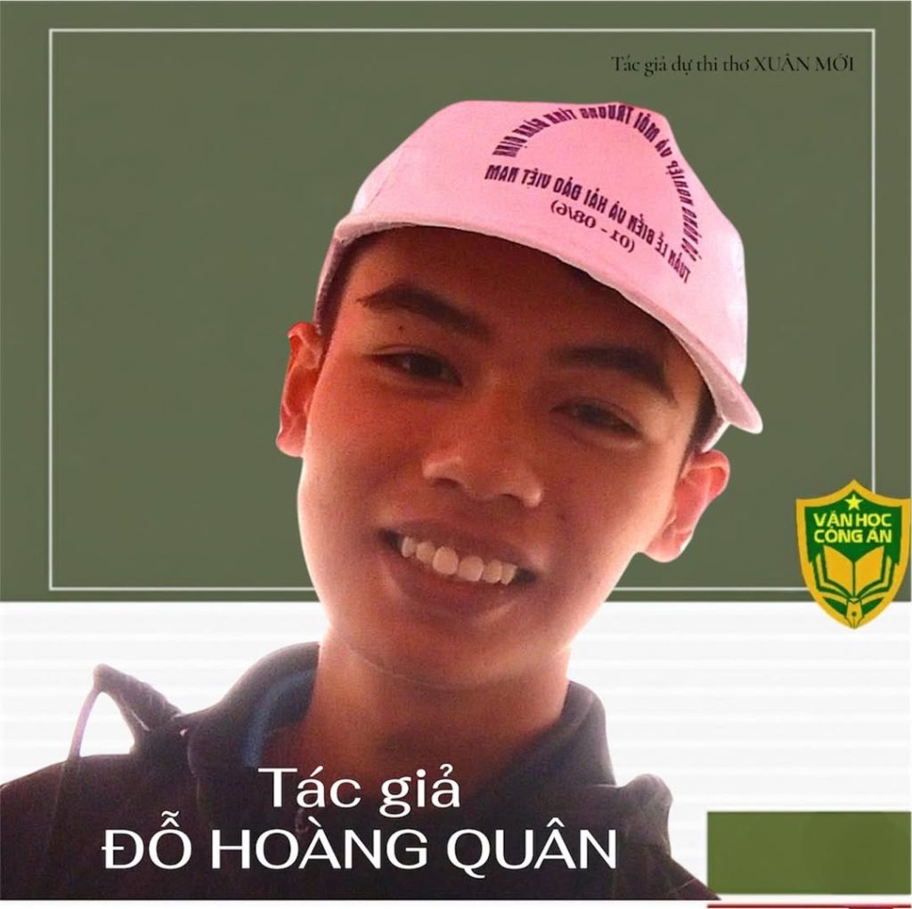 Đỗ Hoàng Quân là gương mặt viết trẻ đến từ Gia Lai, hiện là học sinh THPT. Thơ của Quân giàu cảm quan không gian, đậm hơi thở miền biển miền cát và ký ức gia đình, với giọng điệu mộc mạc mà giàu nhạc tính. Ba bài thơ Nội tôi, Xuân ca xứ cát, Bài ca cho các anh cho thấy khả năng quan sát tinh tế, ngôn ngữ giàu hình ảnh và một tình cảm trong trẻo hướng về con người, quê hương, Tổ quốc.
