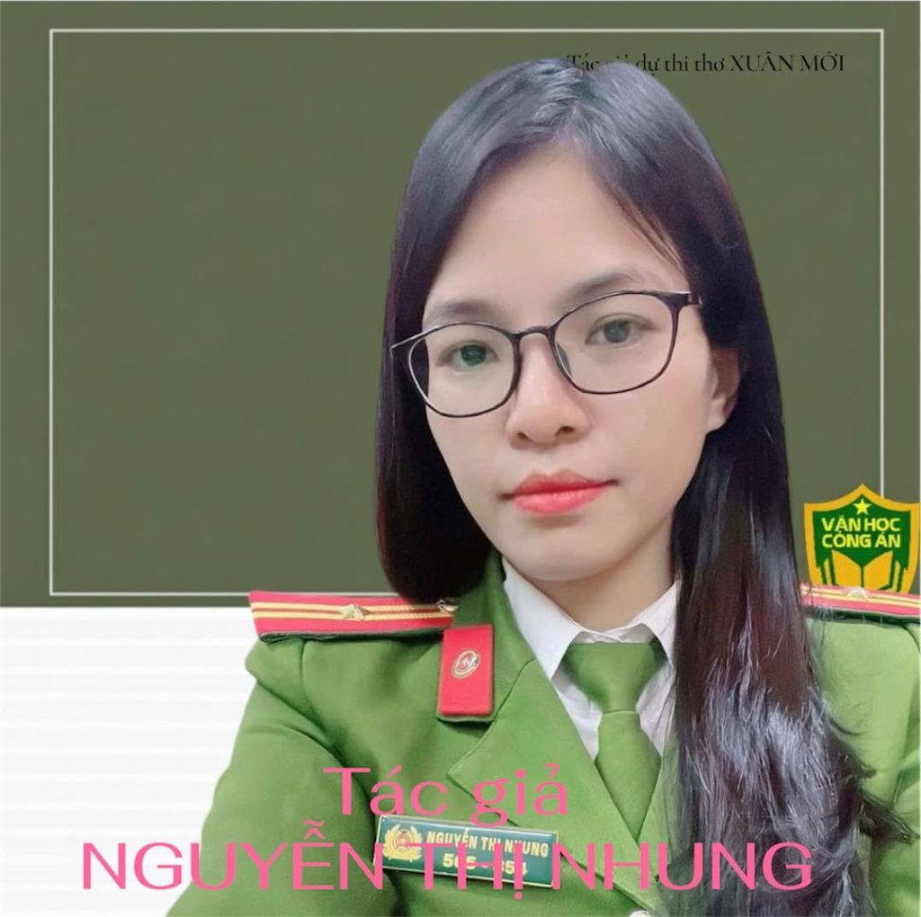 Thạc sỹ Nguyễn Thị Nhung hiện là giảng viên Khoa Lý luận Chính trị, Học viện Cảnh sát nhân dân (Bộ Công an). Thơ của chị mang âm hưởng trữ tình – chính luận, ca ngợi truyền thống 80 năm vẻ vang của lực lượng Công an nhân dân, đồng thời khắc họa hình ảnh người chiến sĩ – người thầy tận tụy, bản lĩnh, giàu lý tưởng và tình yêu nghề.