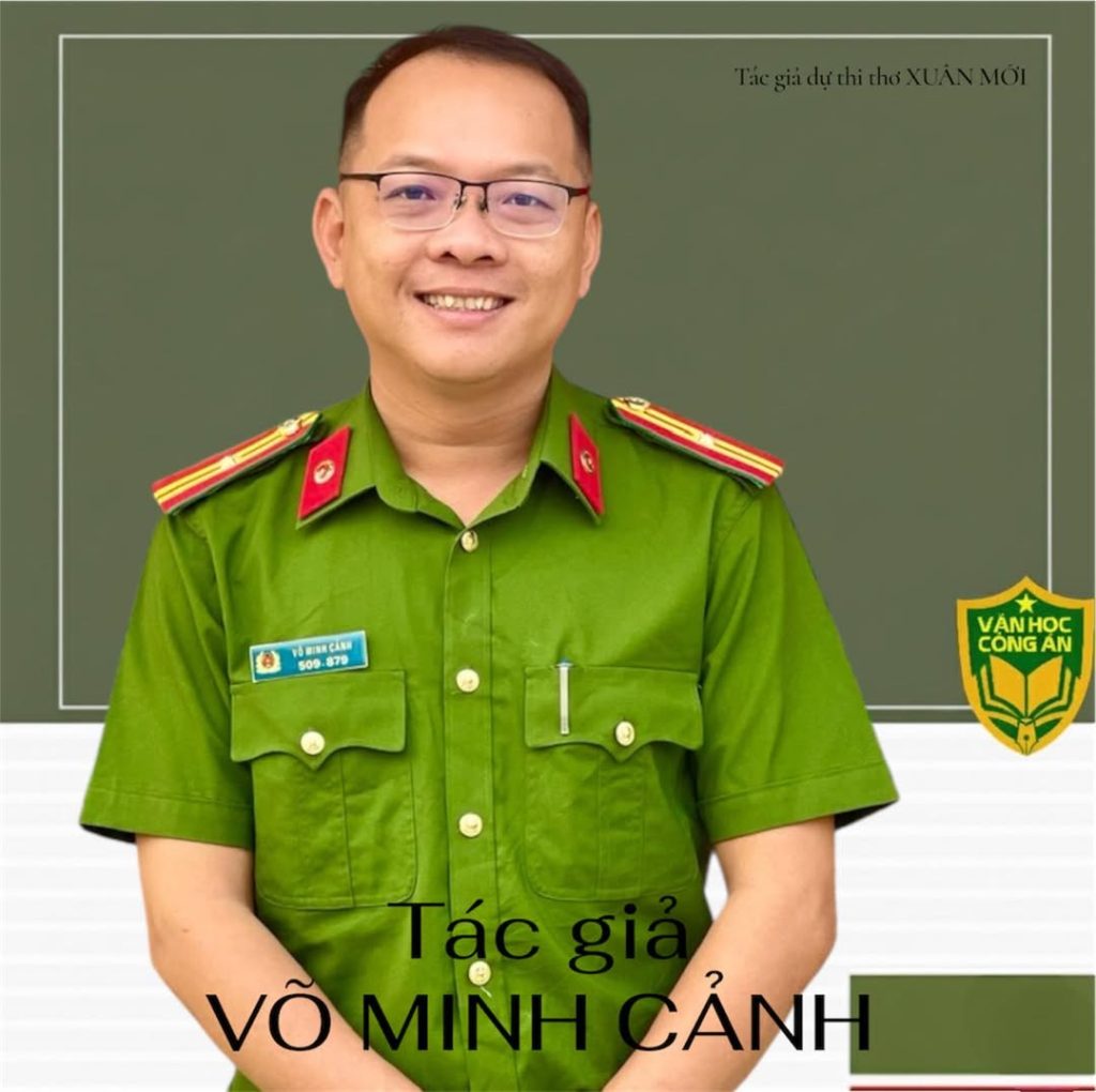 Võ Minh Cảnh, sinh năm 1989, cấp bậc Thiếu tá, hiện công tác tại Khoa QLHC về TTXH – Trường Cao đẳng CSND II. Không chỉ là người chiến sĩ Công an tận tụy, anh còn là tác giả của những vần thơ giàu cảm xúc, khắc họa chân thực hình ảnh người Công an vì nhân dân phục vụ, đặc biệt trong các chiến dịch cấp căn cước, giữ gìn bình yên nơi biên giới và sẻ chia với những mảnh đời khó khăn. Thơ anh mộc mạc, giàu tính nhân văn và thấm đẫm nghĩa tình quân dân.