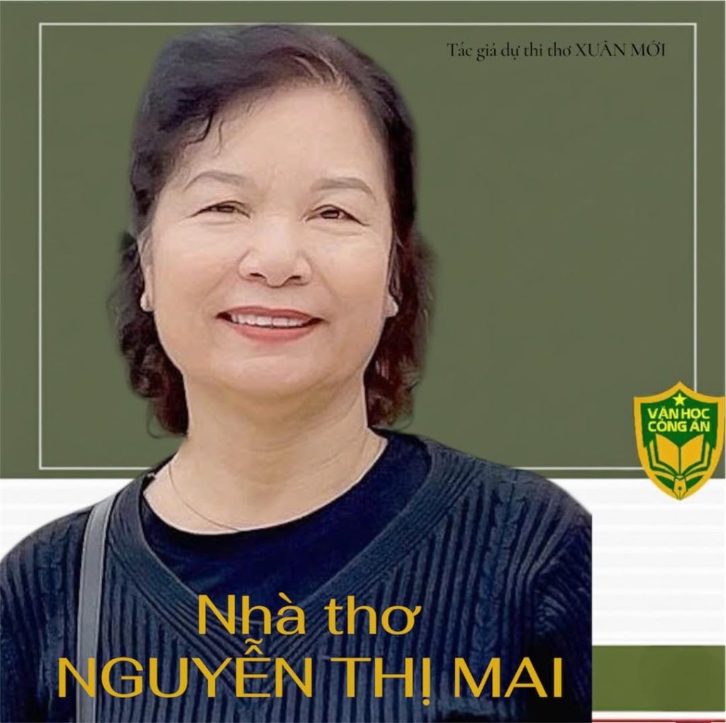 Nhà thơ Nguyễn Thị Mai, Hội viên Hội Nhà văn Việt Nam, hiện đang sống và biết tại Hà Nội. Bà đã in 17 tập thơ và nhận nhiều giải thưởng văn học từ Trung ương đến địa phương. Năm 2025, bà được giải khuyến khích cuộc thi thơ viết về ngành công an Hà Nội.